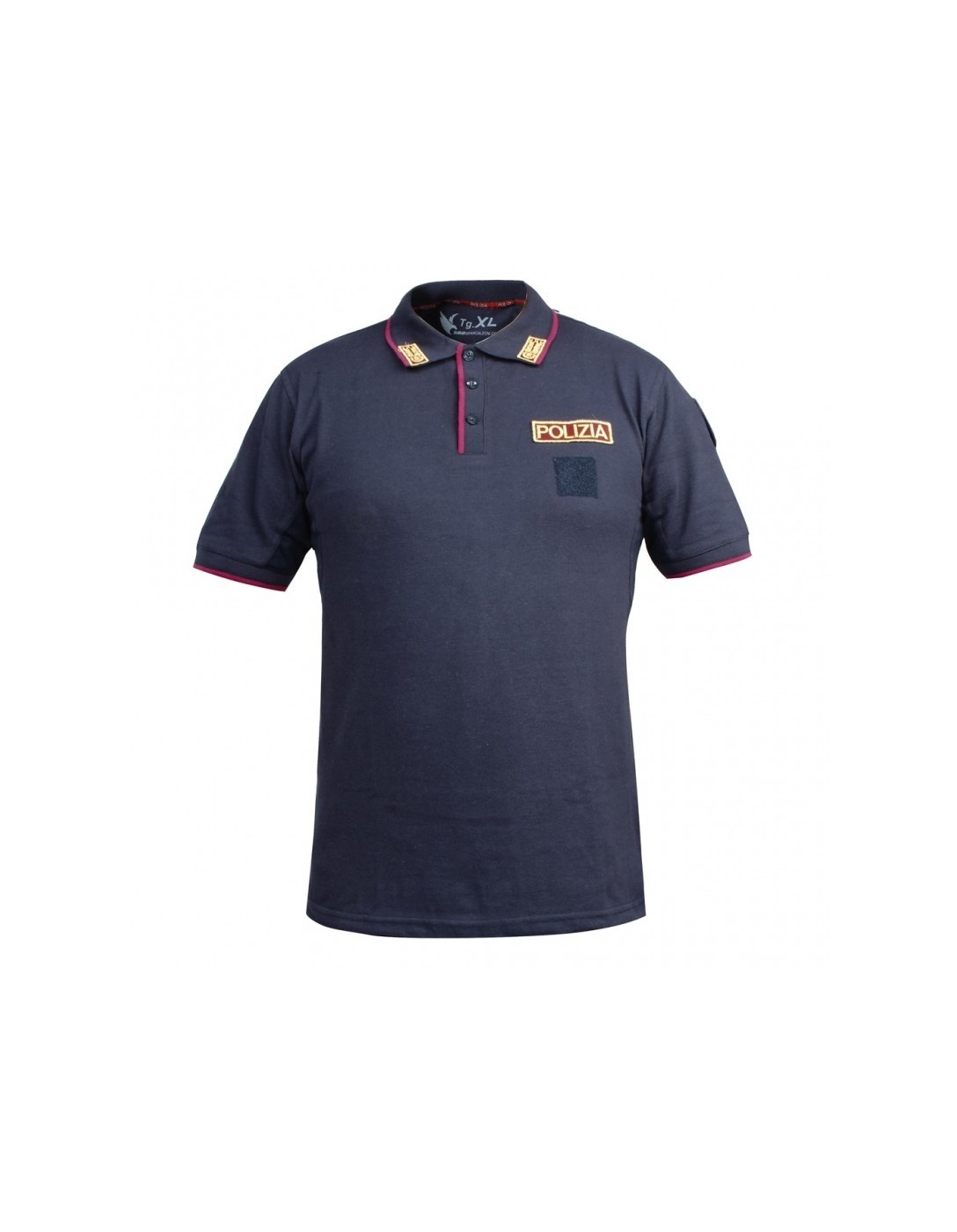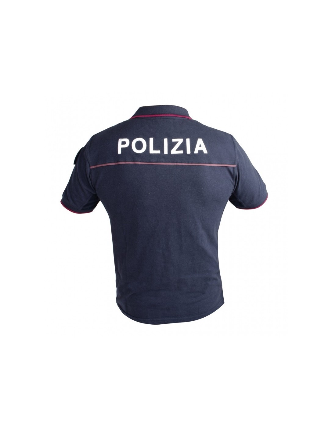 Polo Blu Navy da Uniforme POLIZIA, Alamari sul colletto, porta grado velcro sul petto, scritta spalla "POLIZIA"